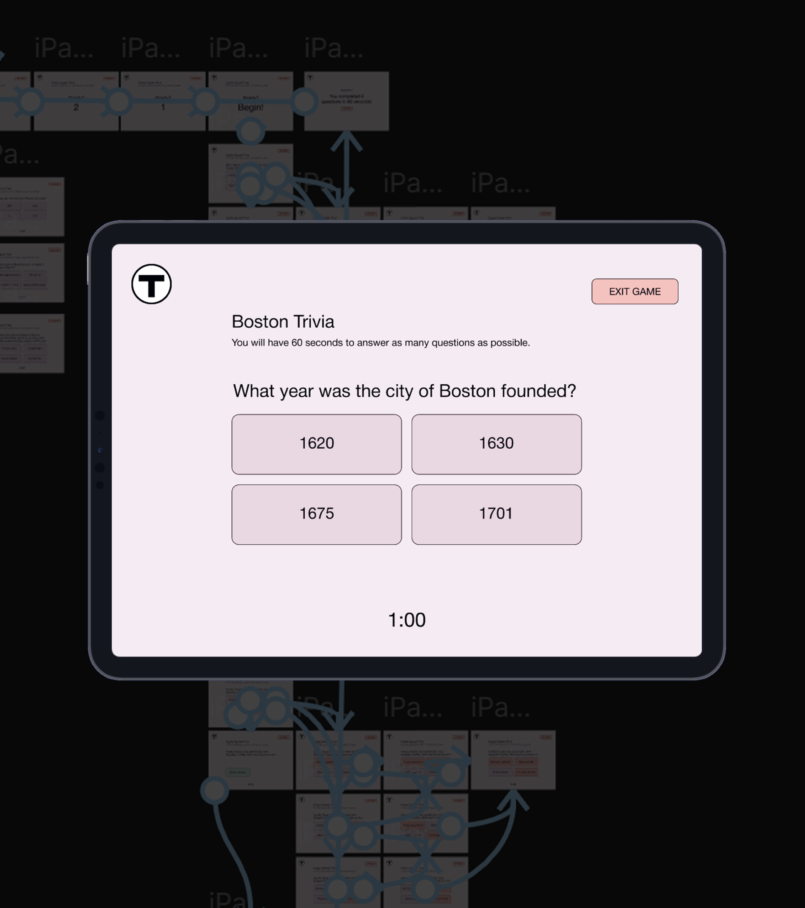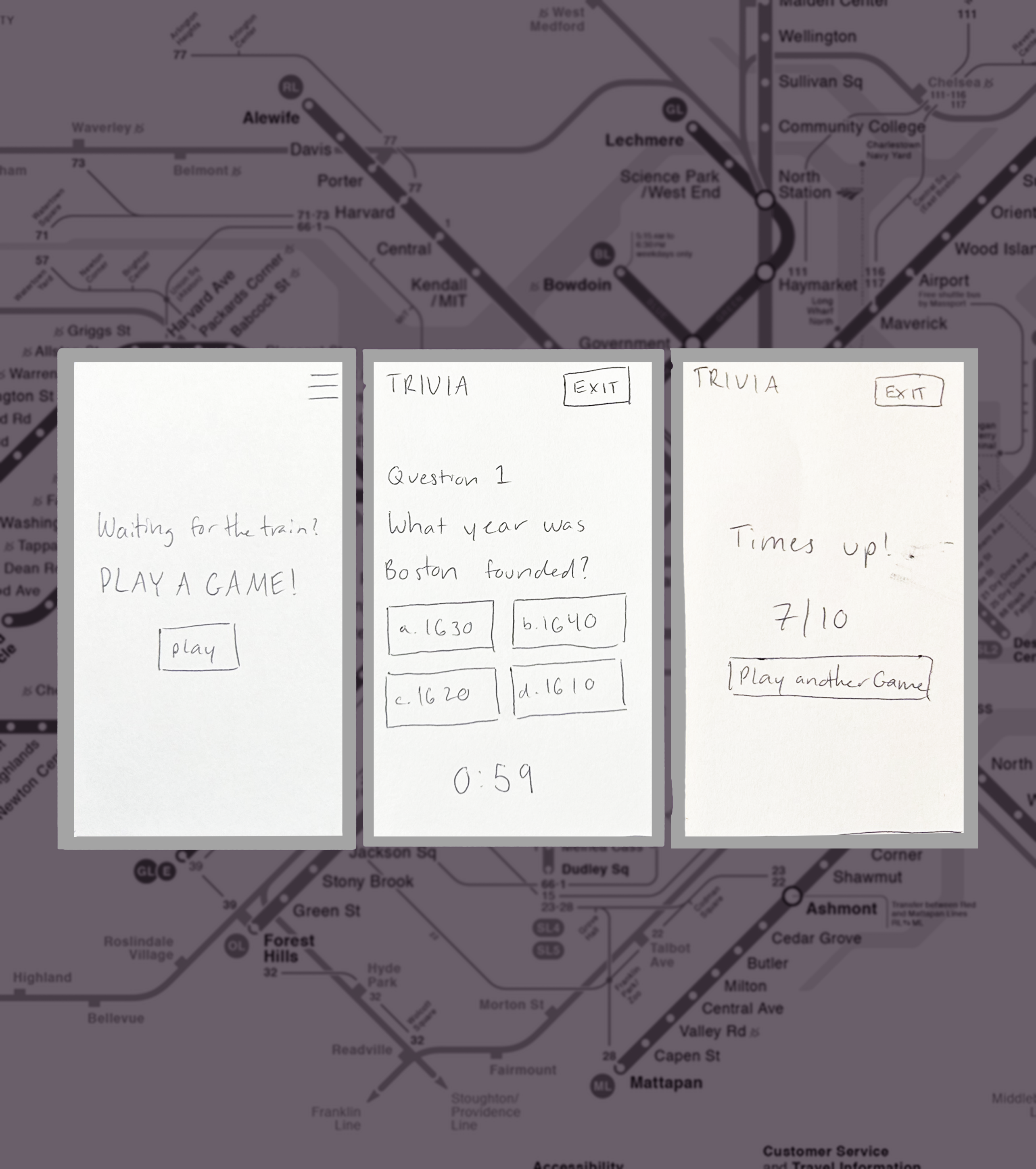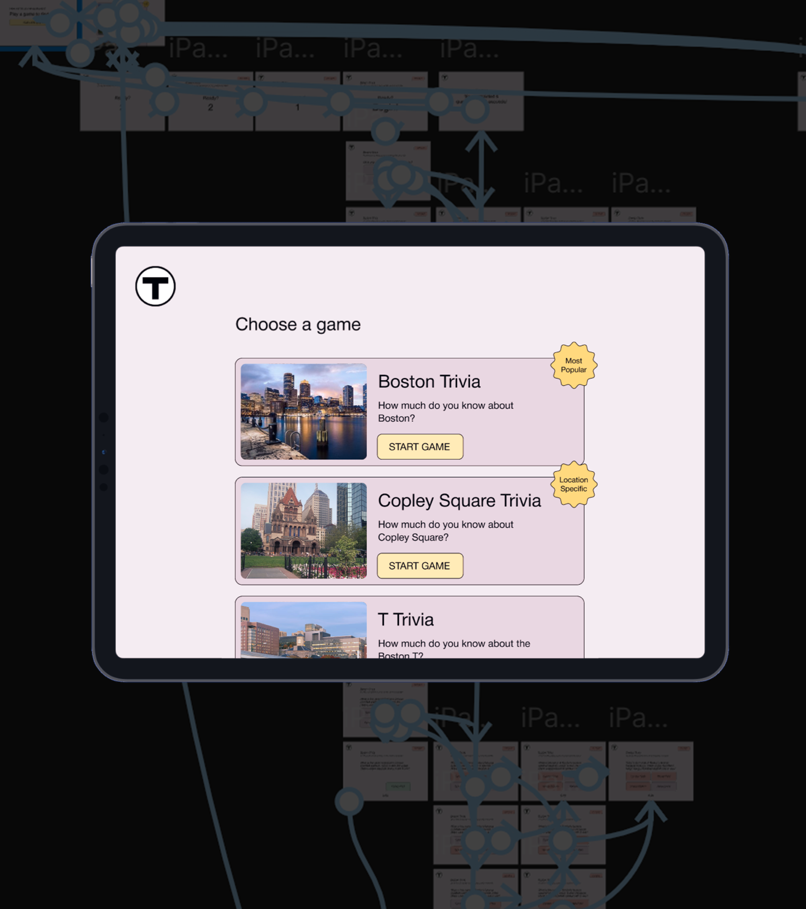 The MBTA Trivia Game aims to improve the rider experience on the Massachusetts Bay Transport Authority, or the MBTA, by creating a digital trivia game kiosk for station platforms. Designed for tourists and new users, I aimed to make waiting for trains more enjoyable through a fast-paced, engaging, and informative game. Inspired by simple interactive experiences like hopscotch, I aimed to create a fun, accessible, and easy-to-implement experience that anyone can enjoy. Deliverables include research, paper wireframes, digital wireframes, mockups, and functional prototype.